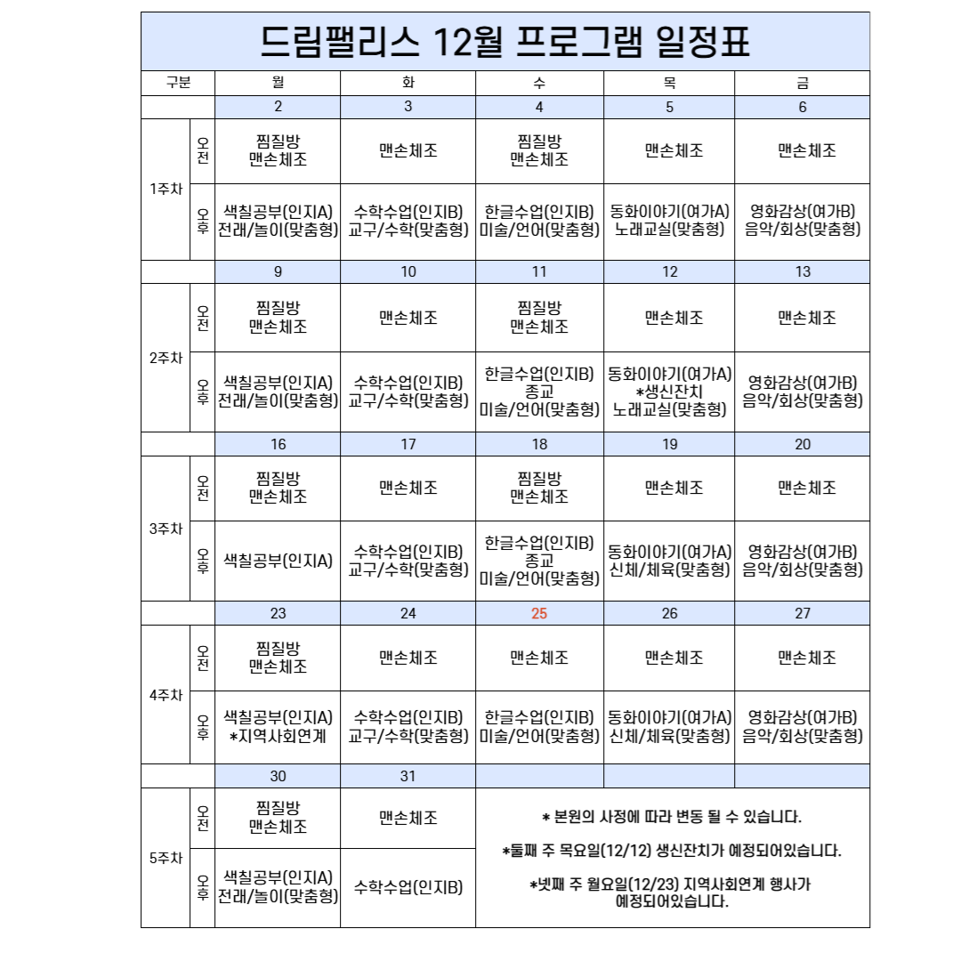 24³â 12¿ù ÇÁ·Î±×·¥ ÀÏÁ¤Ç¥