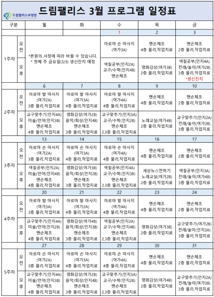 23³â 3¿ù ÇÁ·Î±×·¥ ÀÏÁ¤Ç¥