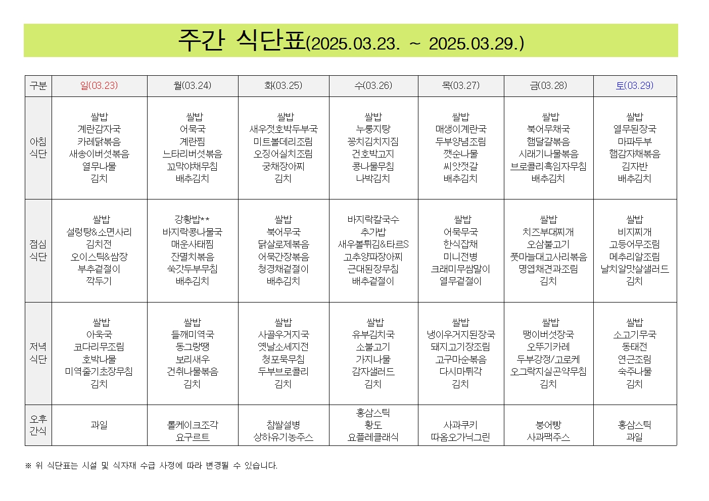 25³â 3¿ù 2°ÁÖ ÁÖ°£ ½Ä´Ü..