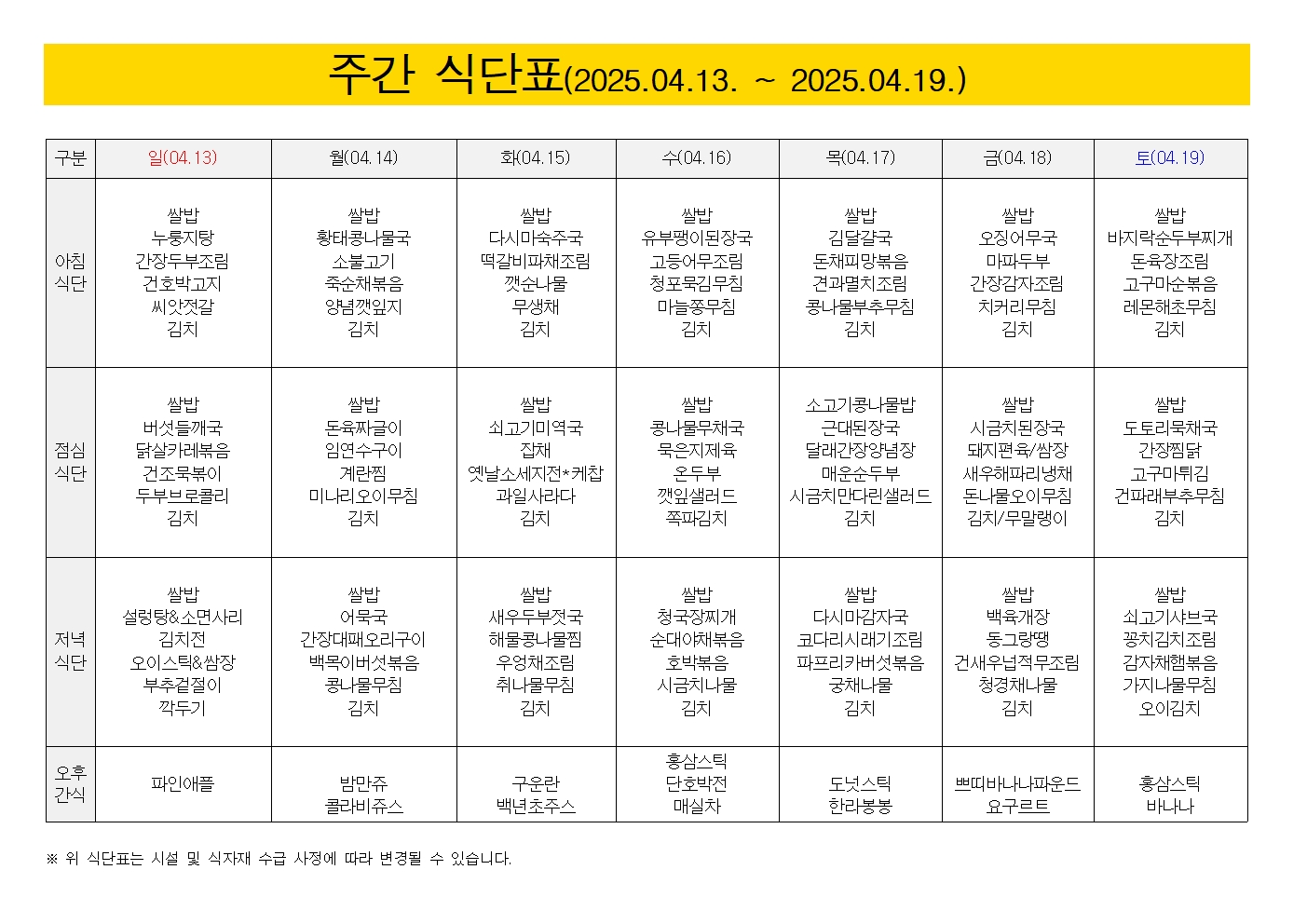 25³â 4¿ù 2°ÁÖ ÁÖ°£ ½Ä´Ü..