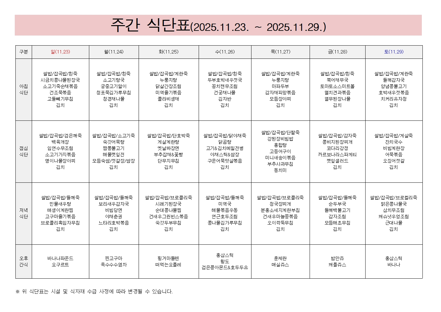 25³â 11¿ù 3°ÁÖ ÁÖ°£ ½Ä´Ü..