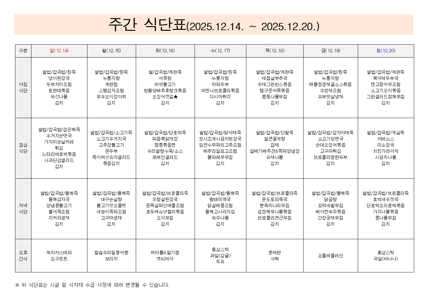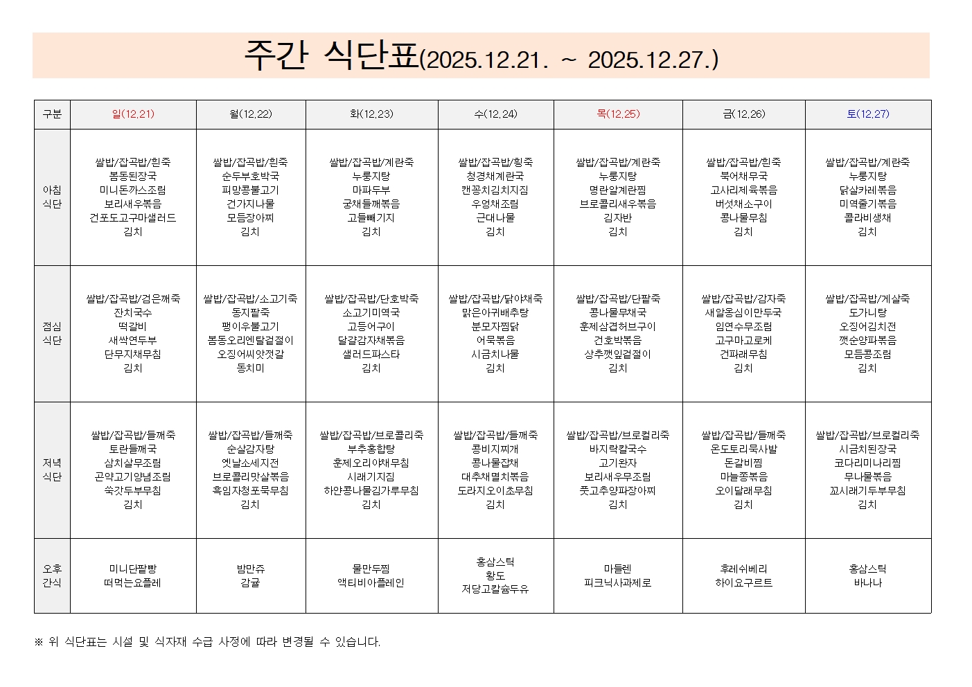 25³â 12¿ù 1°ÁÖ ÁÖ°£ ½Ä´Ü..